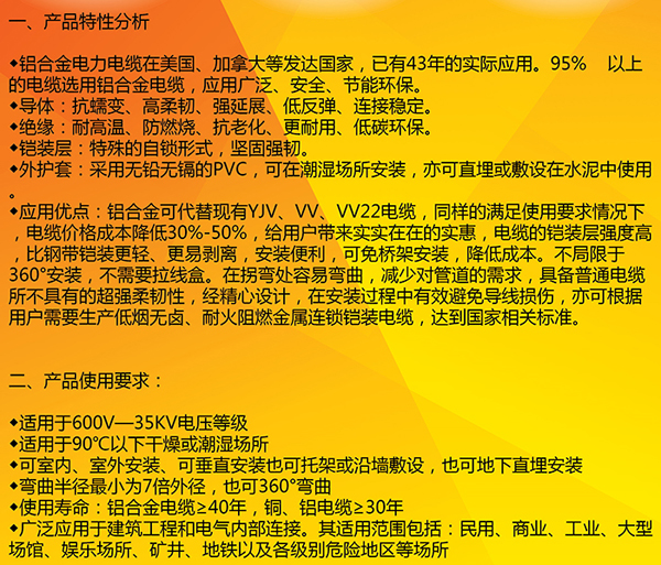 鋁合金電纜:鋁合金電纜ZR-YJLHV 瀏覽:3637